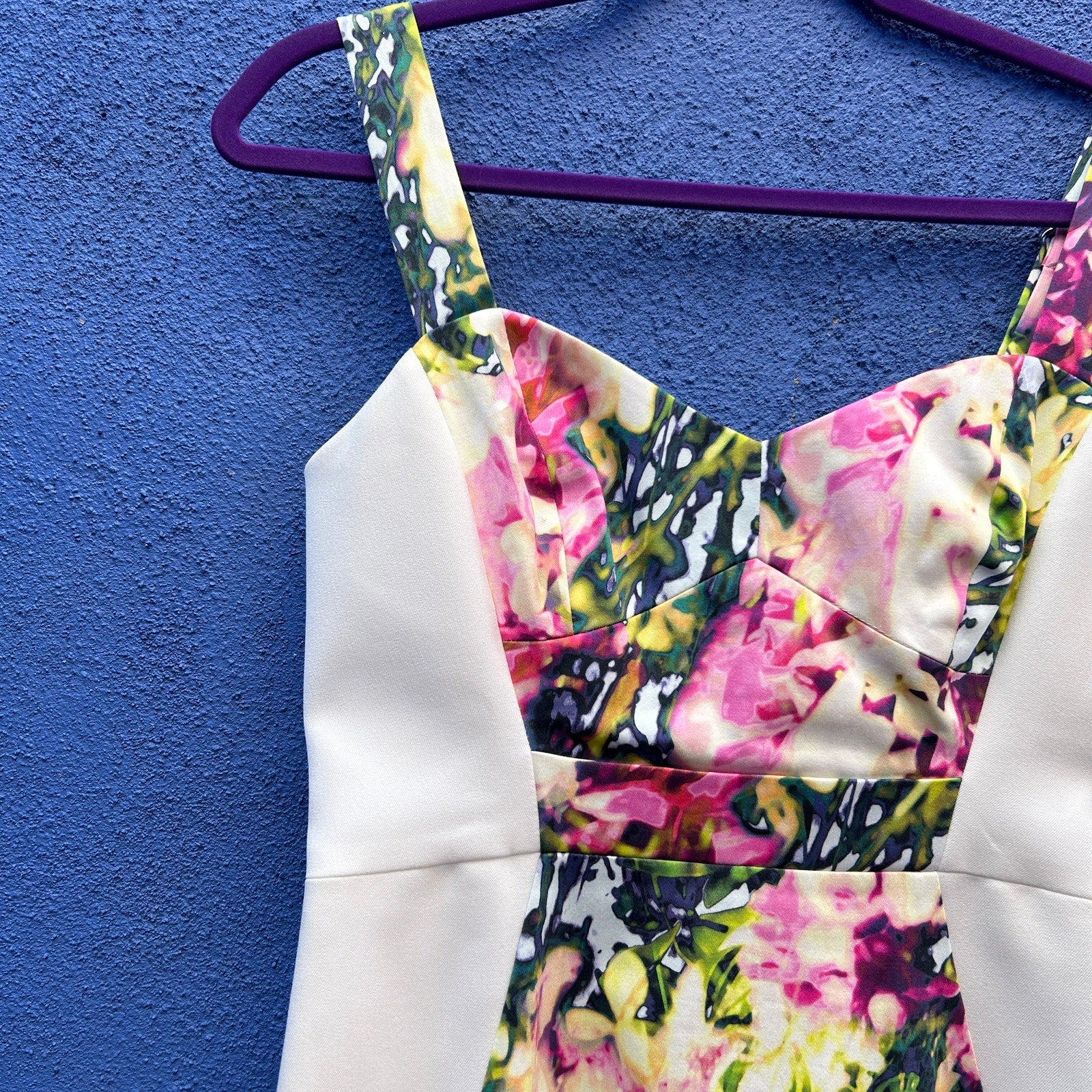 black halo abstract watercolor floral paneled sleeveless sheath dress size 4