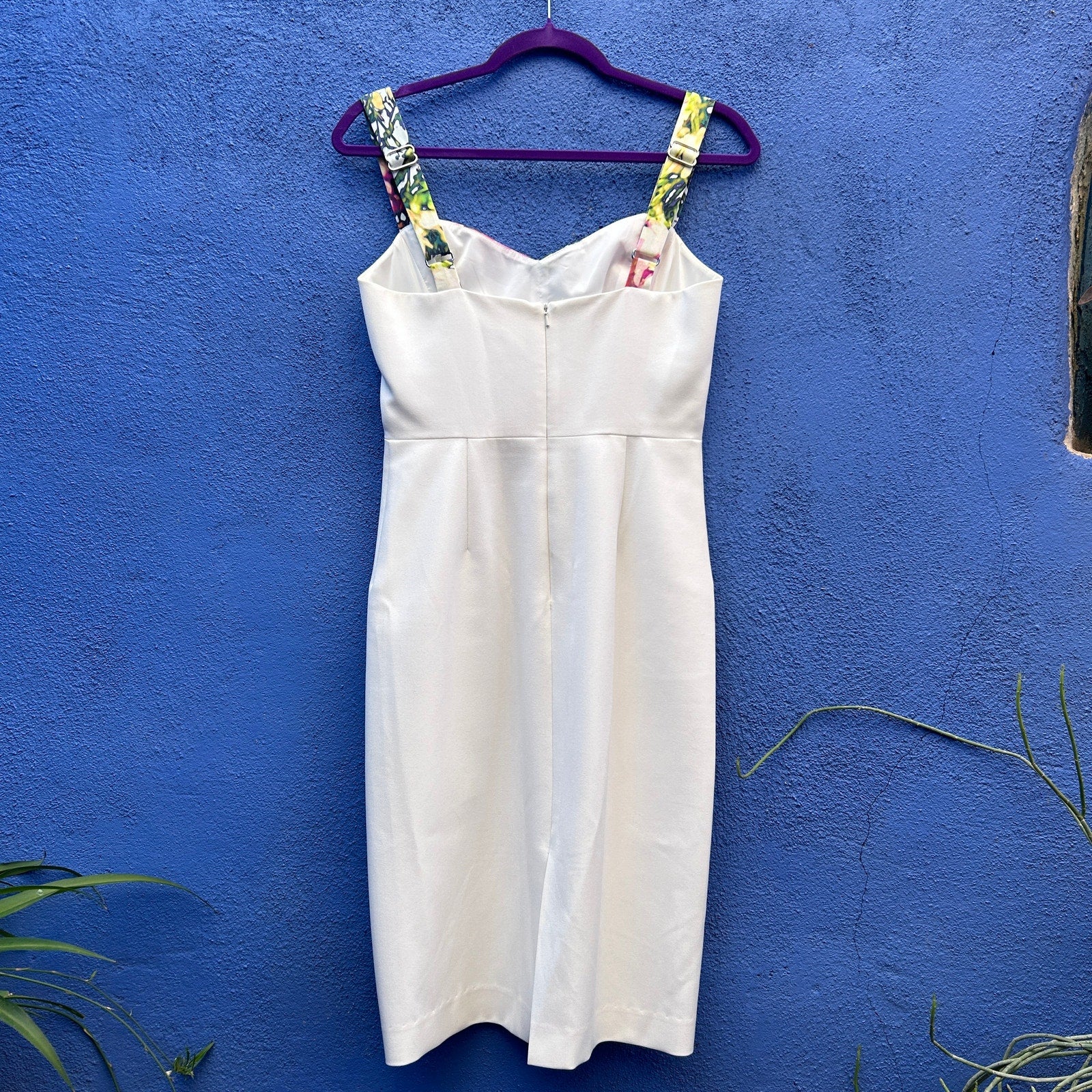 perfect for special occasions or date nights / adjustable straps / hidden back zipper / sleek and classy / lined / good preowned condition with a faint discoloration on the bottom left (last pic)