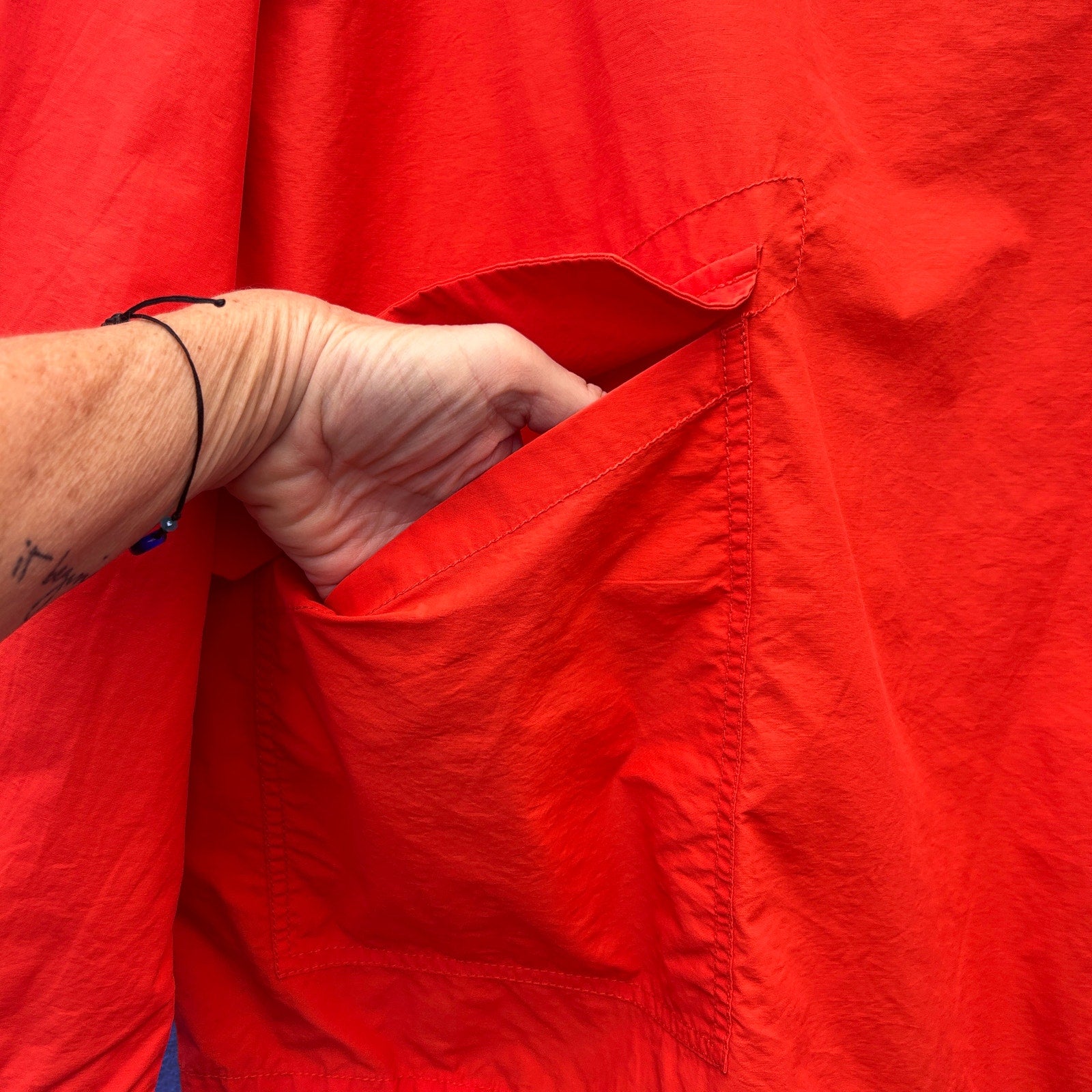 eileen fisher organic cotton and nylon oversized orange popover windbreaker