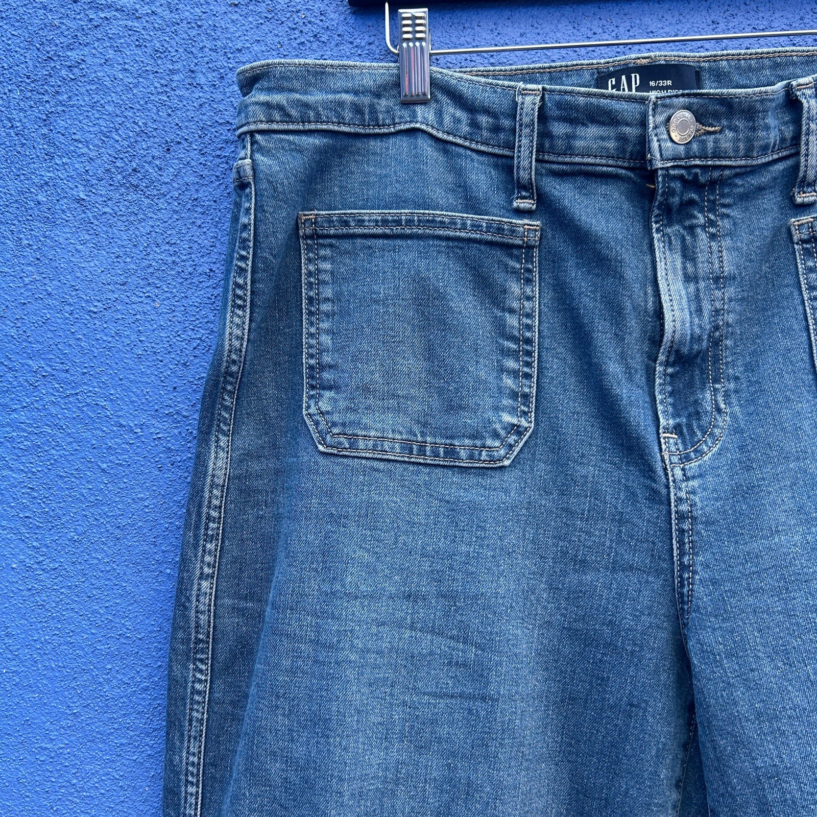 lighter wash cotton denim with a smidge of elastane for a perfect fit / button and zip closure / sailer pocket detail / excellent preowned condition