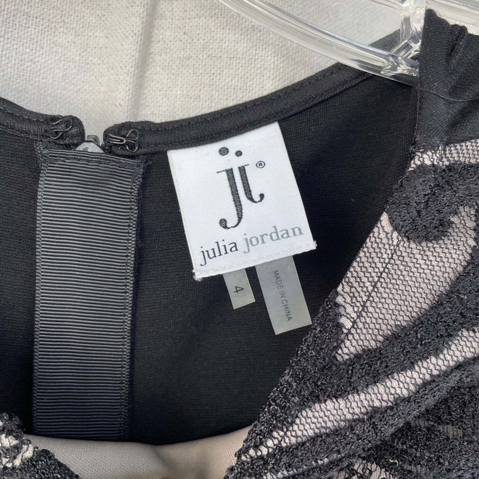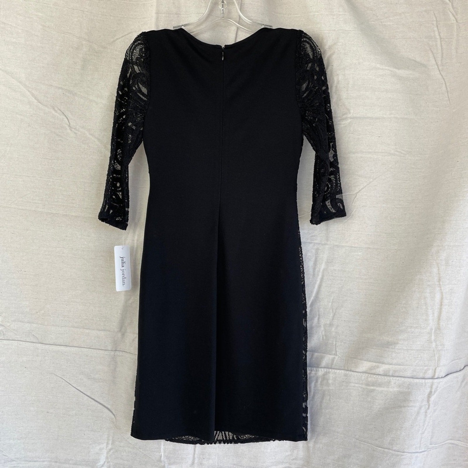 julia jordan Black and Cream Lace Overlay 3/4 Sleeve Shift Dress - NWT Size 4