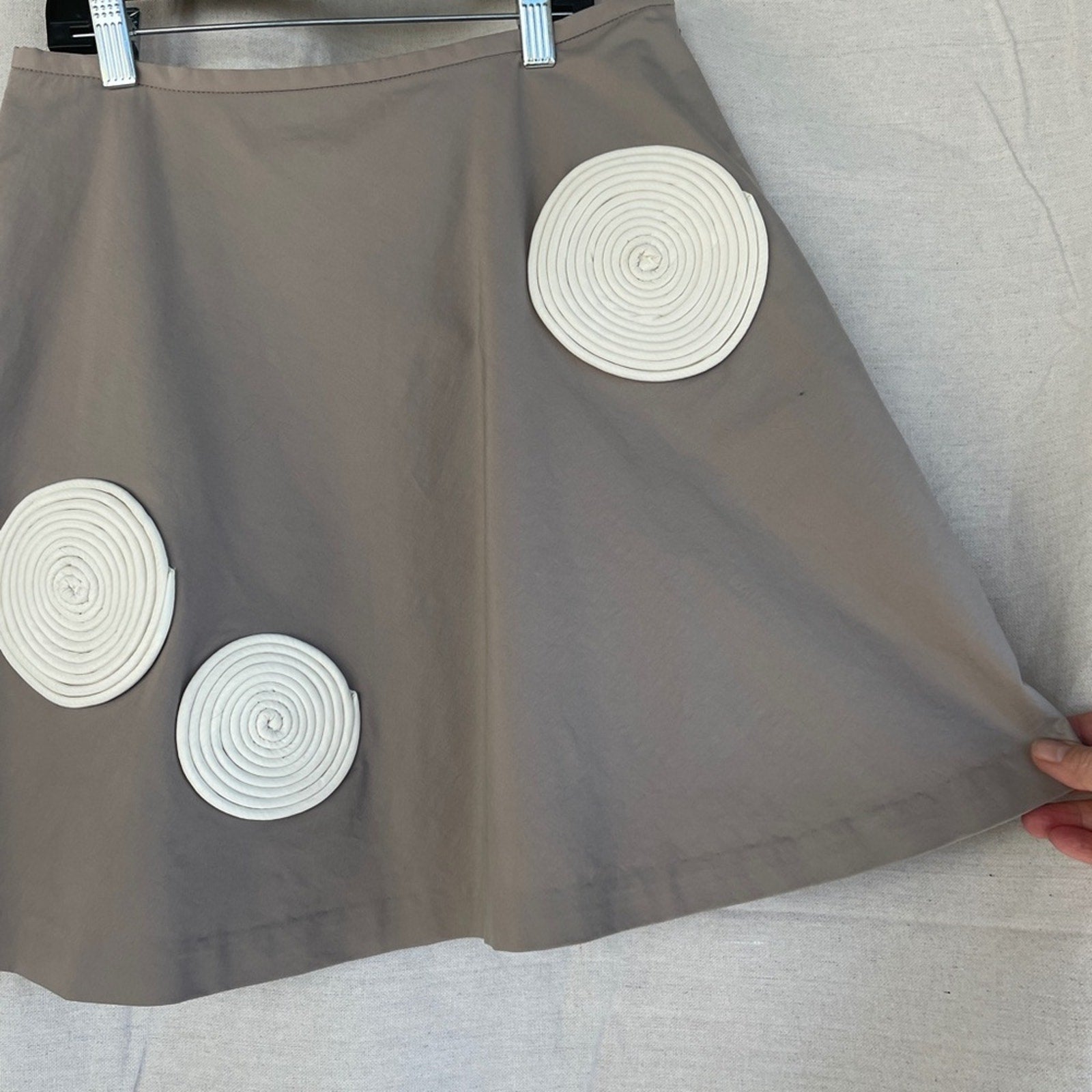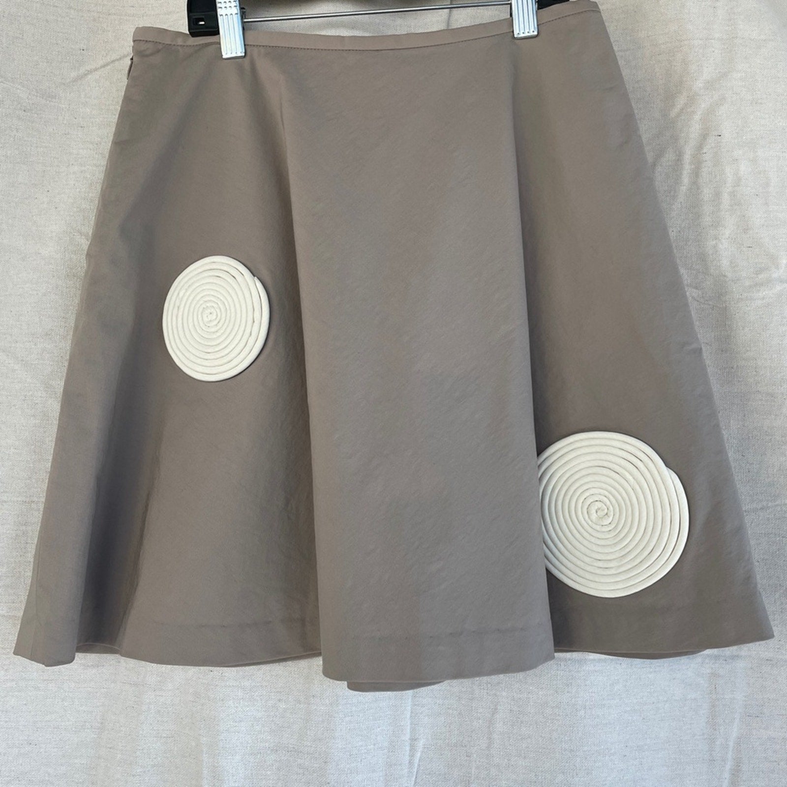 Lee Em Jeong Tan Nylon A-line Skirt with Hand Appliqué Cord Circles Size 40
