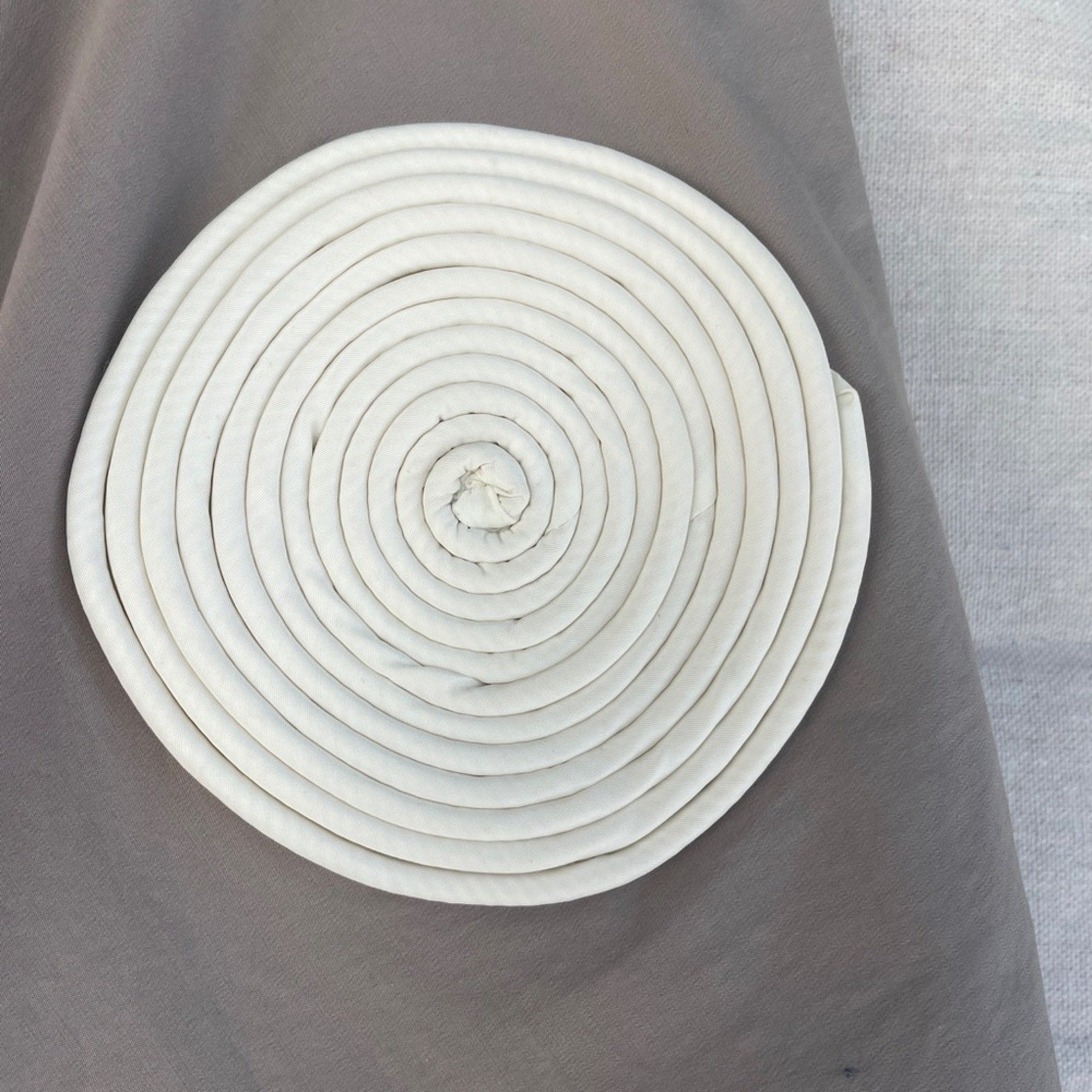 Lee Em Jeong New York Tan Nylon A-line Skirt with Hand Appliqué Cord Circles