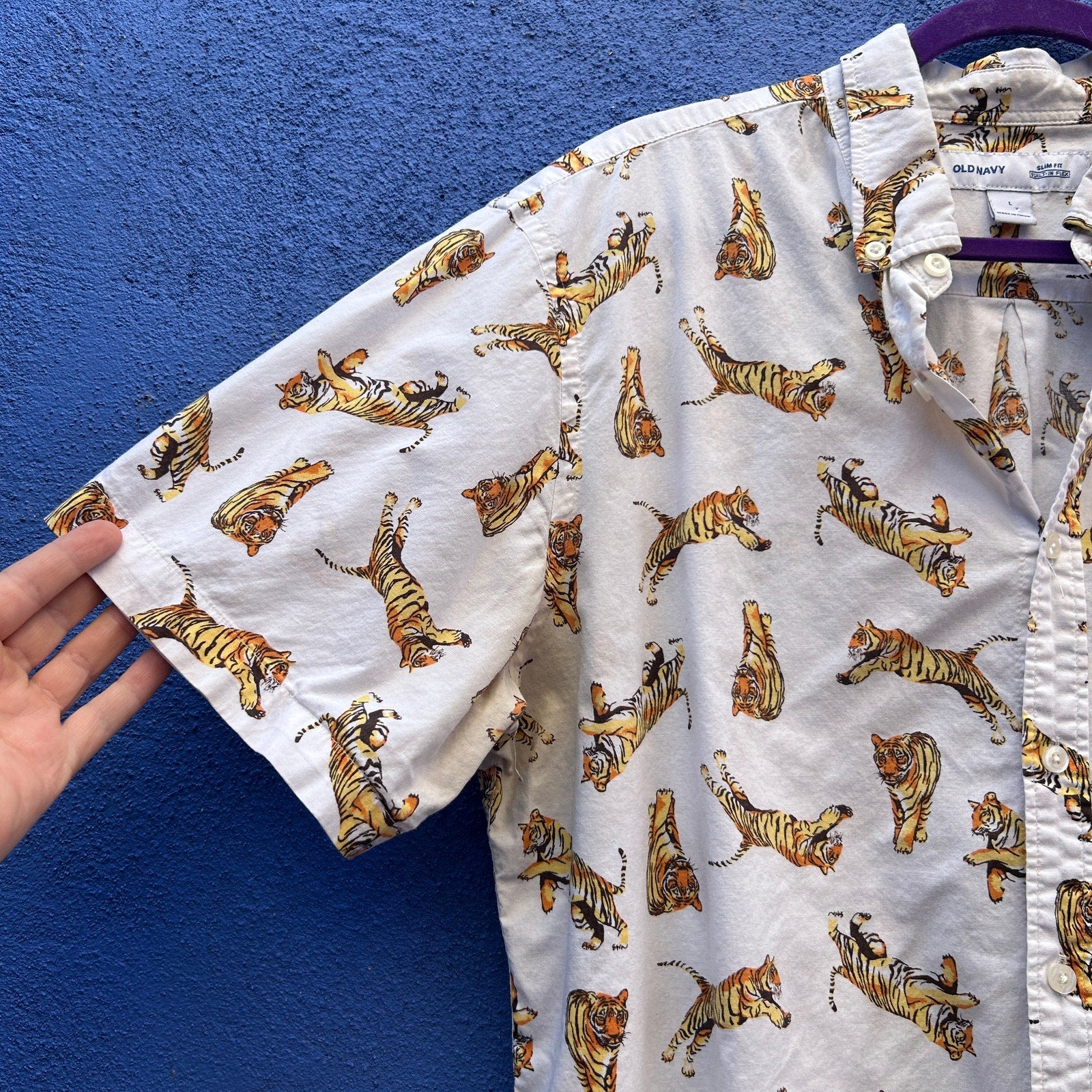 cotton blend with a smidge of stretch / hip tiger print / excellent preowned condition