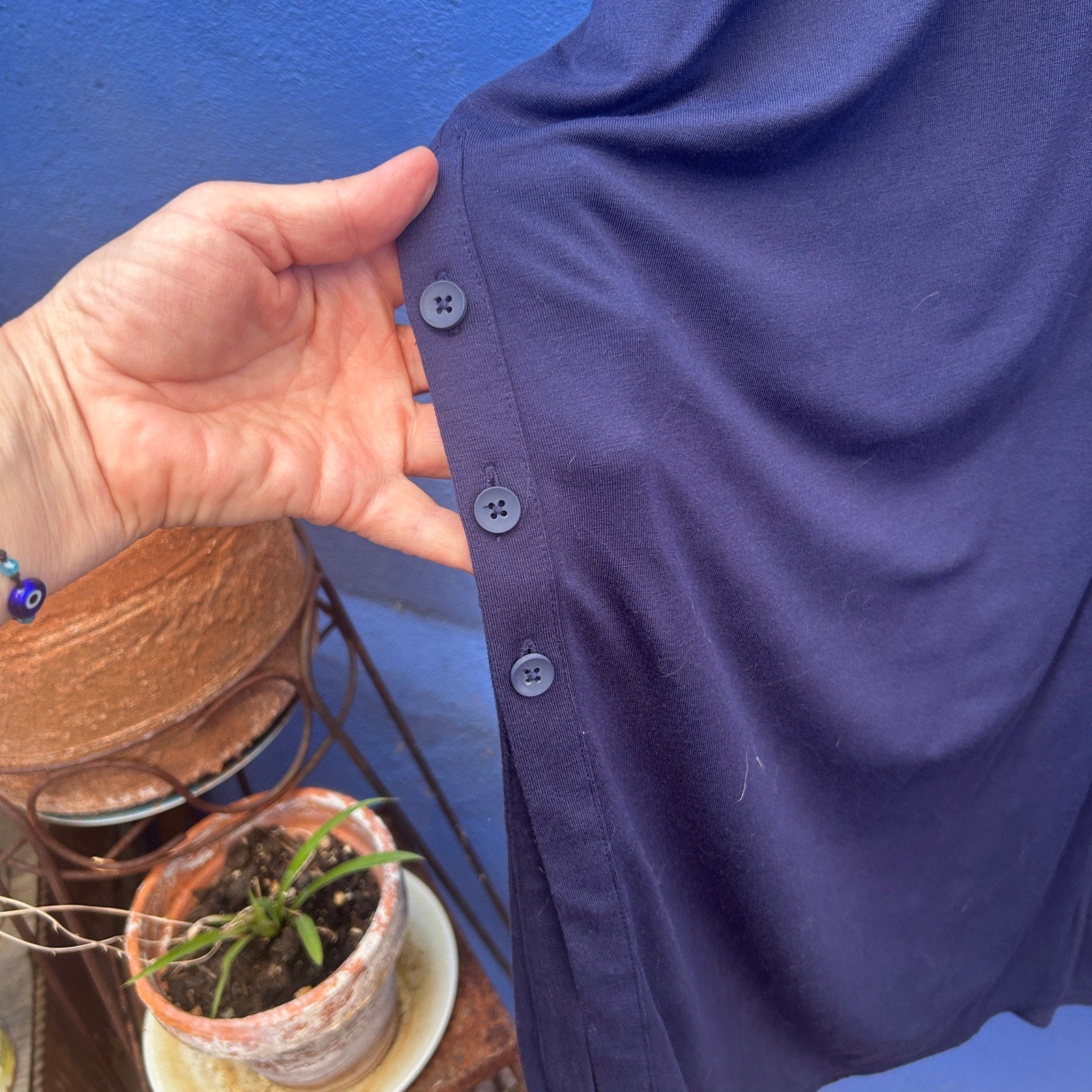 universal standard navy rayon blend button front maxi dress size small/ 14-16