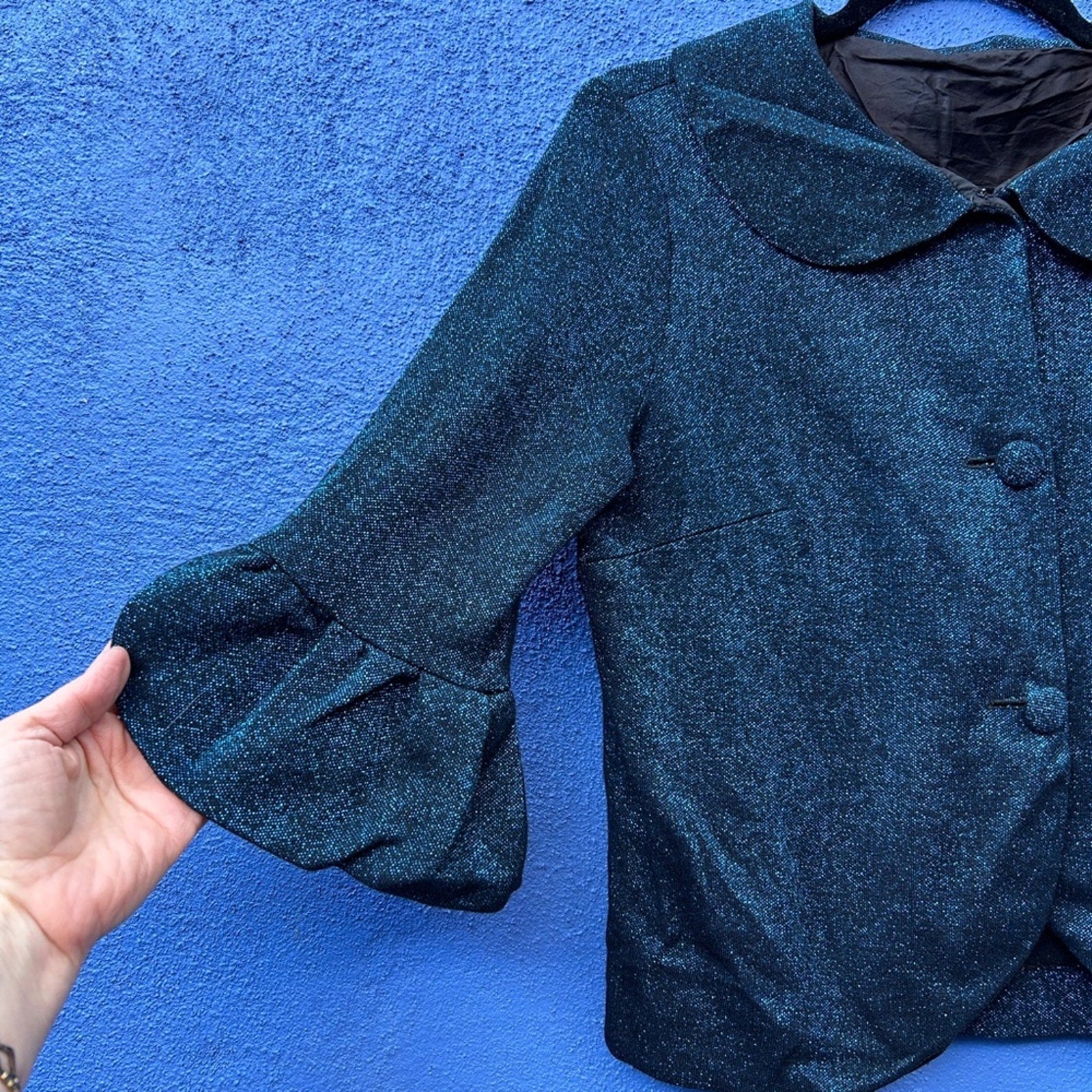 Vintage 60s Blue Metallic 3/4 Sleeve Cropped Cocktail Jacket