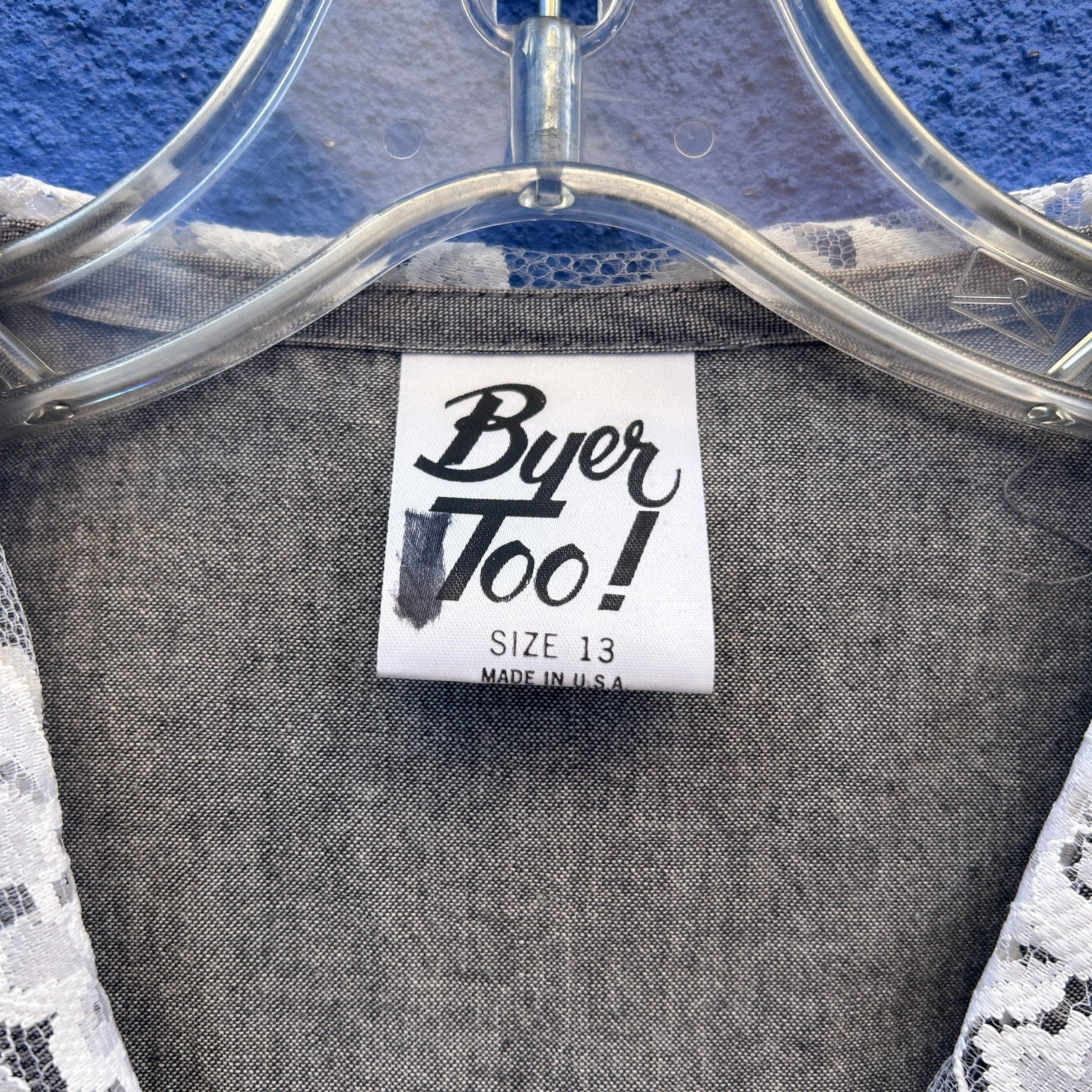 vintage 80s byer too! lace flanked gray cotton jumpsuit size 13 / medium