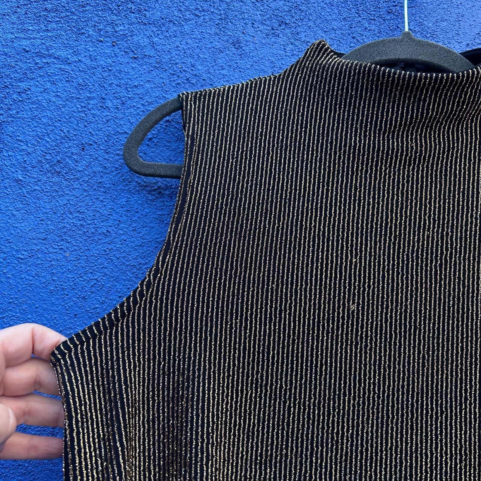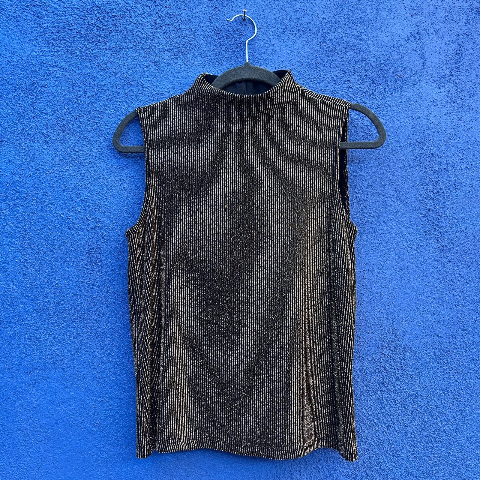 vintage 90s impression sleeveless gold metallic ribbed mockneck top