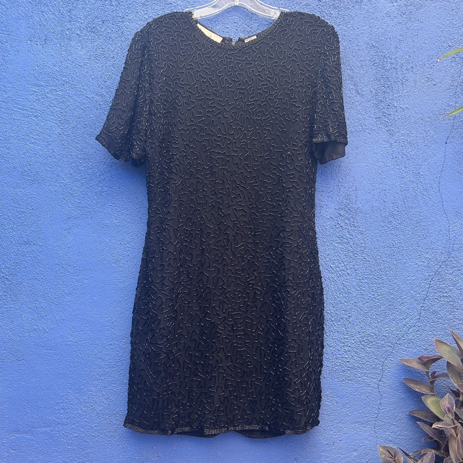 vintage laurence kazar beaded silk cocktail dress size medium petite
