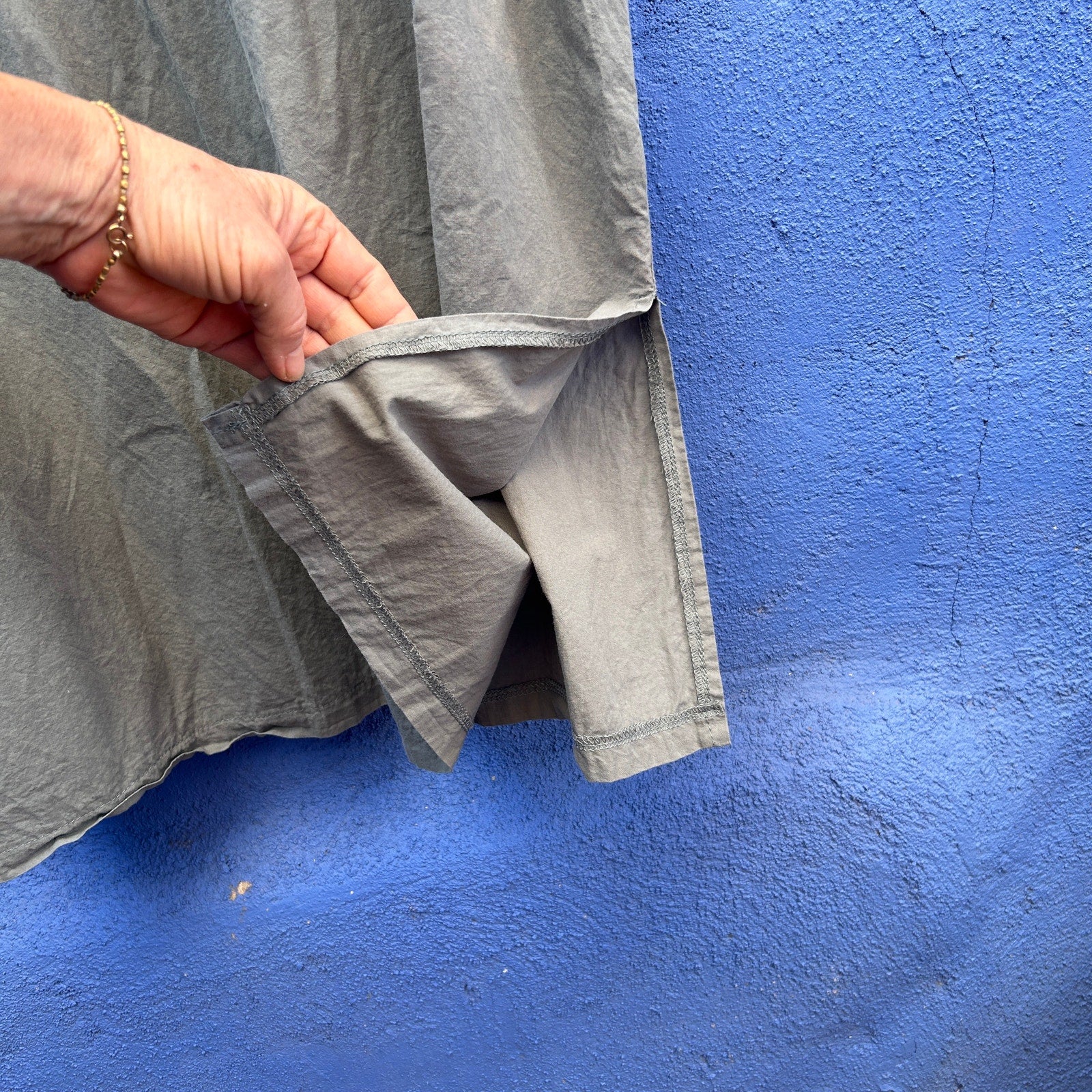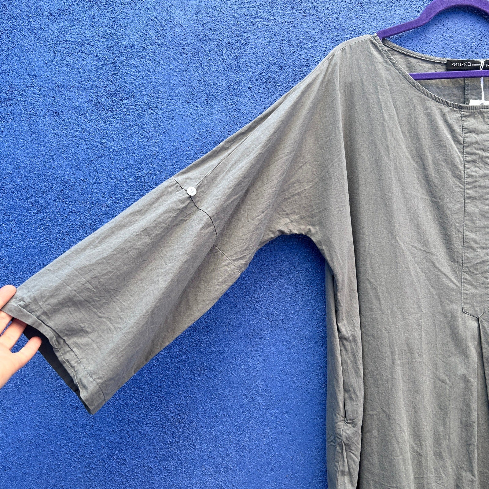 perfect for lagenlook and minimalist styles / crisp and light cotton / pockets! / excellent preowned condition
